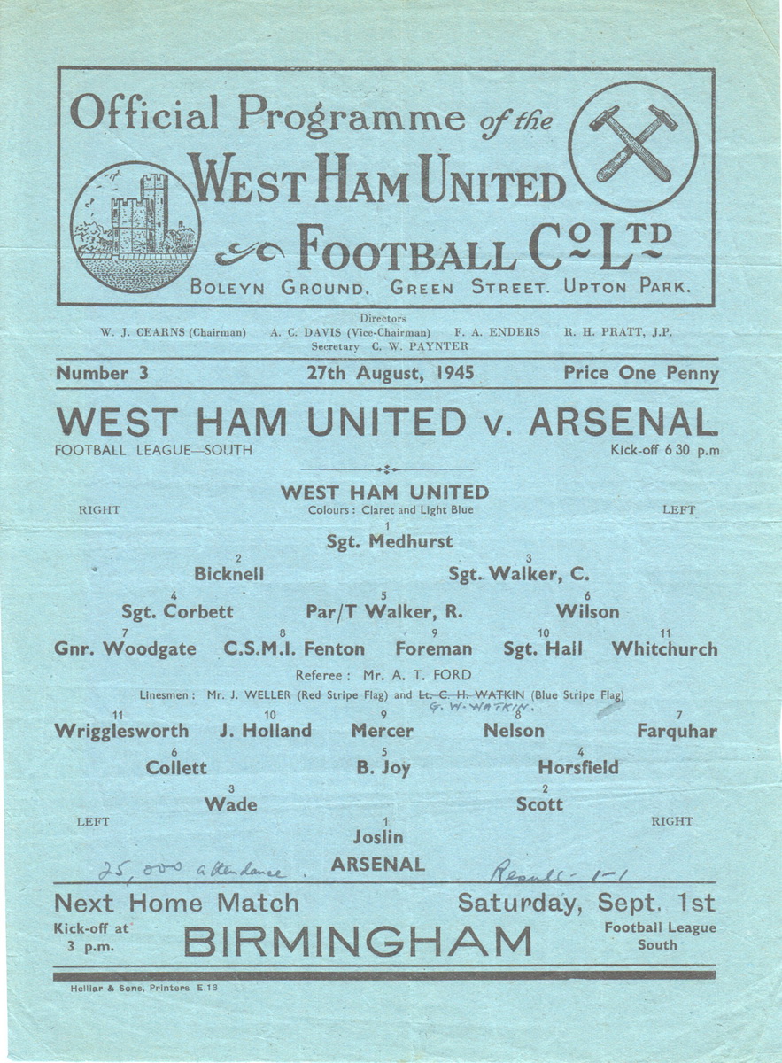 West Ham United Homes and Aways – 1940’s to date. West Ham United Reserves and Youths Homes – 1950’s to date. Arsenal Homes – 1950’s to date, Chelsea Homes – 1950’s to 1980’s, many other English League and Cup ...